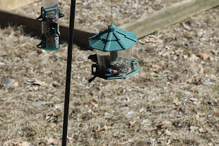 First Pair of Brown-Headed Cowbirds at the sunflower bird feeder today....